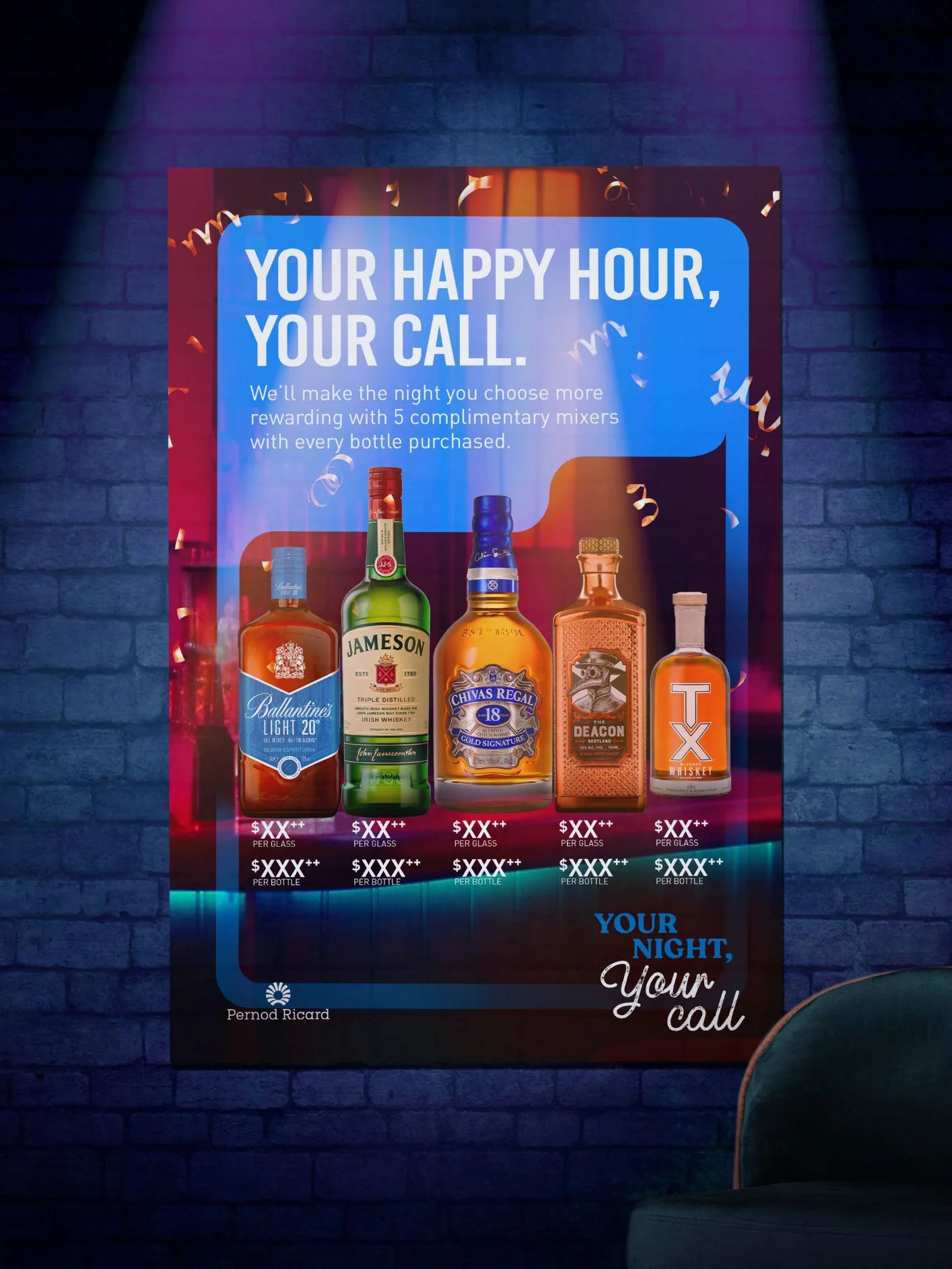 art direction | conceptualisationThe brief was to create a campaign to promote 5 whisky brands in Pernod Ricard’s whisky portfolio. The aim is to drive awareness and consideration of PRS whisky brands.